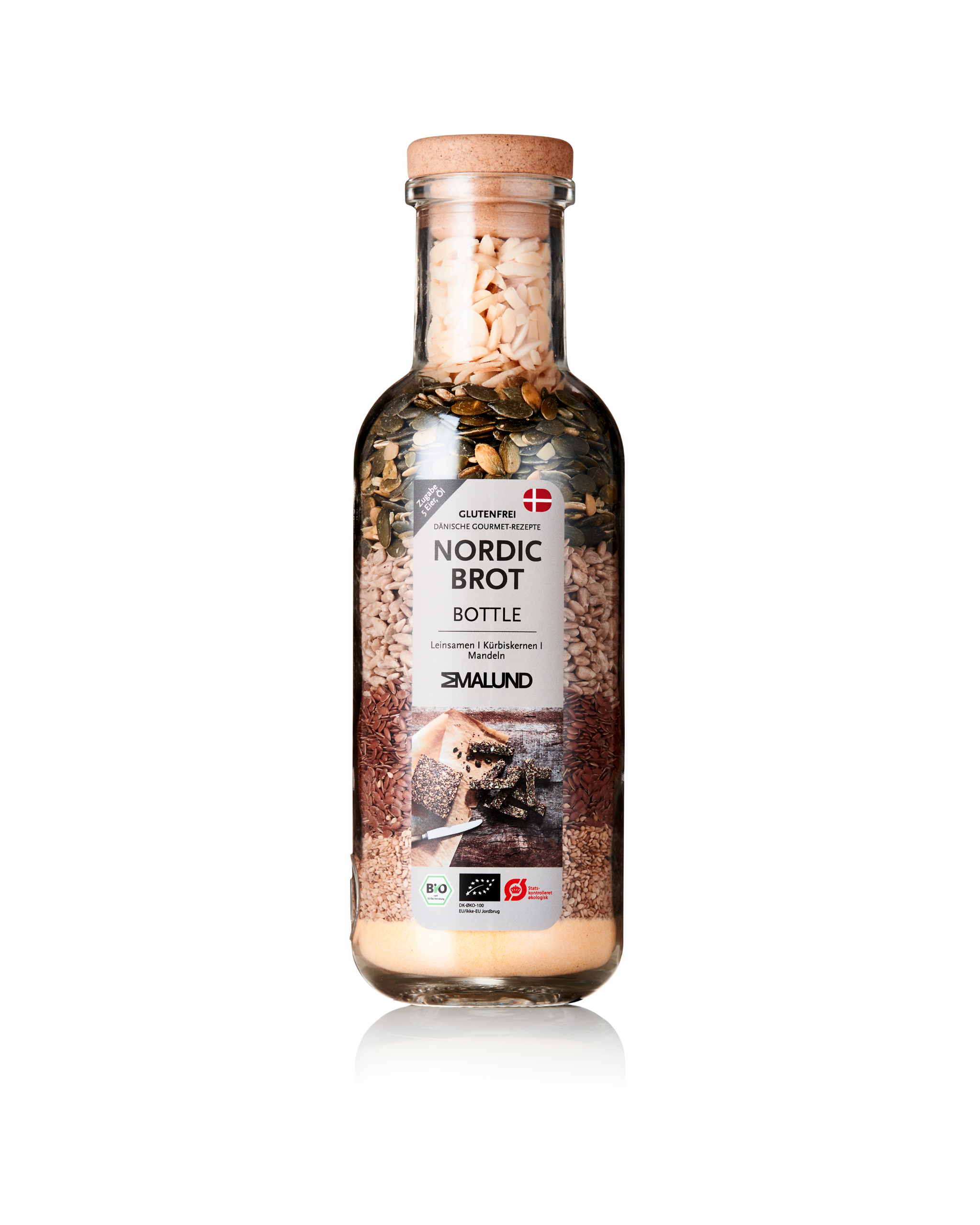 Nordic Brød ist die moderne Form des Steinzeitbrots ohne Gluten. Ein kleiner Bestandteil ist Maismehl, wodurch sich das Brot besser in dünne Scheiben schneiden lässt, ohne dass es zerkrümelt. Rösten Sie dünne Scheiben Brot im Ofen mit etwas Salz und genießen Sie sie als Snack.